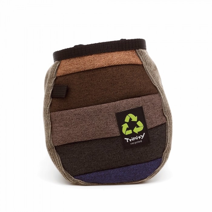 The outer layer of these chalk bags is made from recycled materials, put together in unique combinations of colors, patterns, and textures.