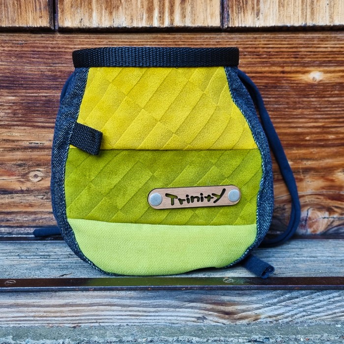 Small pieces of fabric, discarded in the textile industry, get a second life as one of a kind climbing chalk bags, that support you on your climbing adventures.