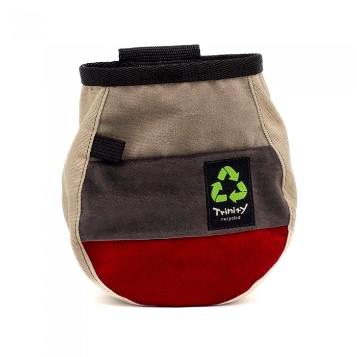 The outer layer of these chalk bags is made from recycled materials, put together in unique combinations of colors, patterns, and textures.