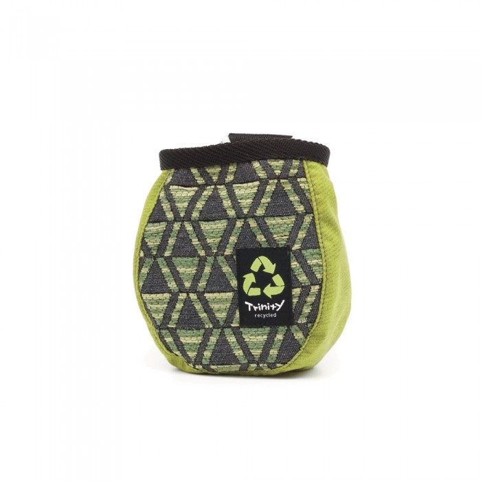 The outer layer of these chalk bags is made from recycled materials, put together in unique combinations of colors, patterns, and textures.