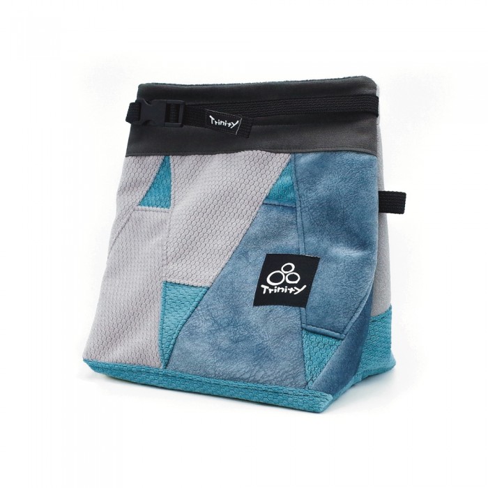The outer layer of these chalk bags is made from recycled materials, put together in unique combinations of colors, patterns, and textures.