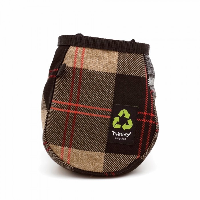 The outer layer of these chalk bags is made from recycled materials, put together in unique combinations of colors, patterns, and textures.